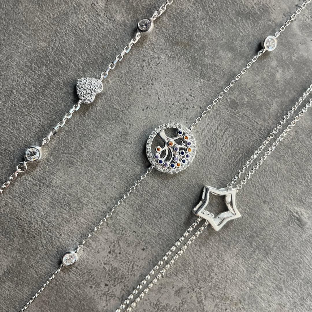 Fabricada con materiales resistentes y acabados de alta calidad, mantiene su brillo y su forma a lo largo del tiempo, reflejando la belleza de los pequeños detalles. Cada pulsera es el resultado de una cuidada selección de componentes que aportan sofisticación y estilo a quien la lleva.